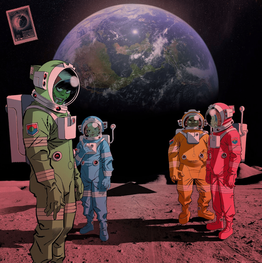 El líder de la banda, 2D dijo: «Muy bien, muchachos, echen un vistazo a estos nuevos trajes espaciales superplásticos. Son muy realistas, ¡es como mirarse en un espejo realmente pequeño! Mírenlos, sí». Este diciembre, explora la nueva tienda Gorillaz con temática navideña que presenta todos los festivos favoritos de la banda”.